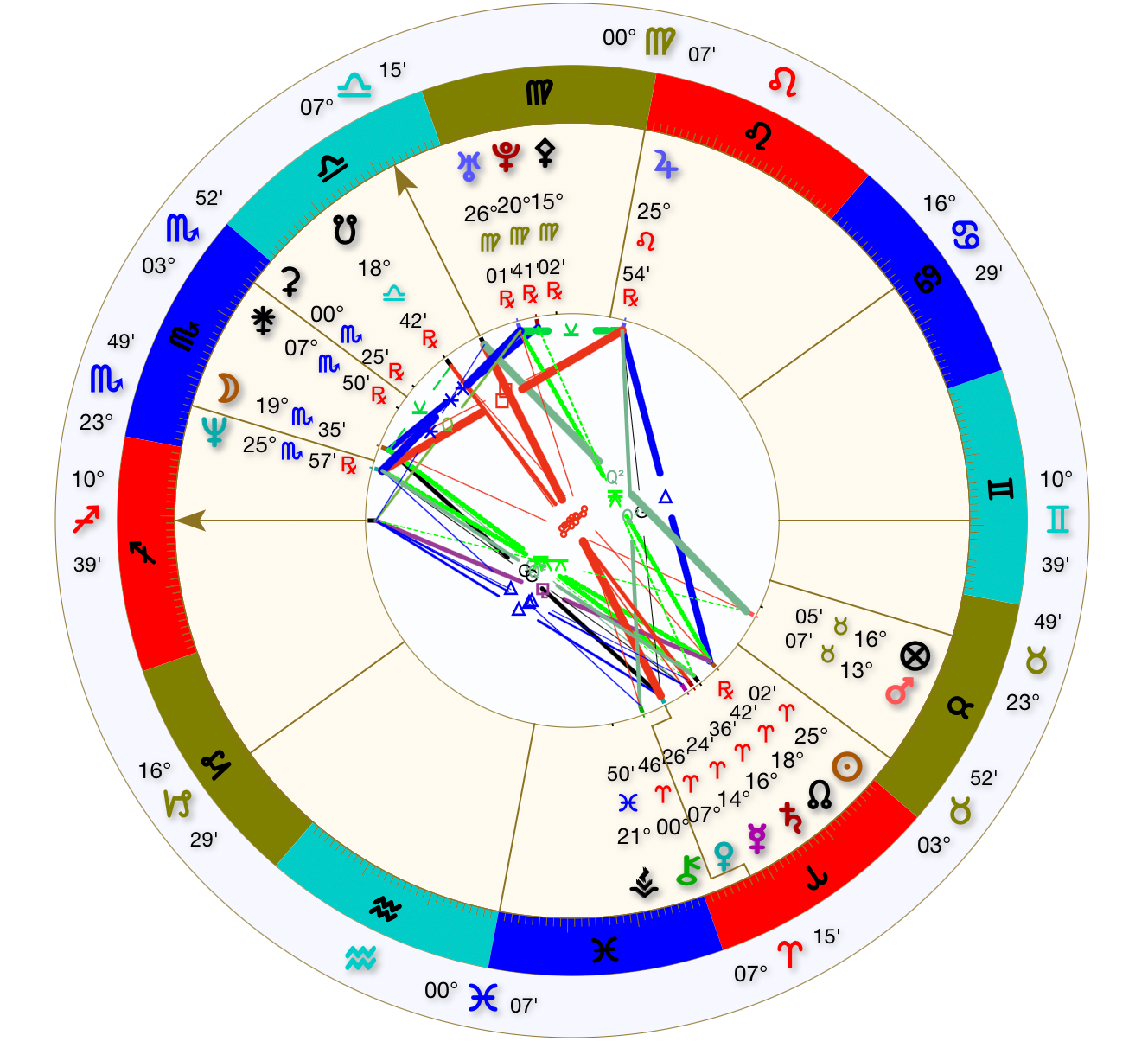 ◦ Un Yod dans un thème Natal dénote toujours une friction intérieure, une dissonance musicale à l’intérieur de la personne.(Maison 4 en dissonance avec la Maison 12 et la Maison 9). On pourrait conclure que les fondamentaux de la personne ne sont pas accordés avec son intégration sociale et sa philosophie de vie.